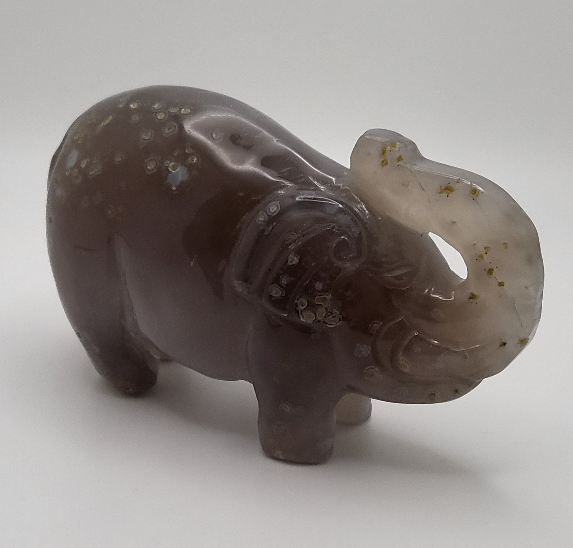 Beautiful Agate Elephant with tiny flower specks throughout.