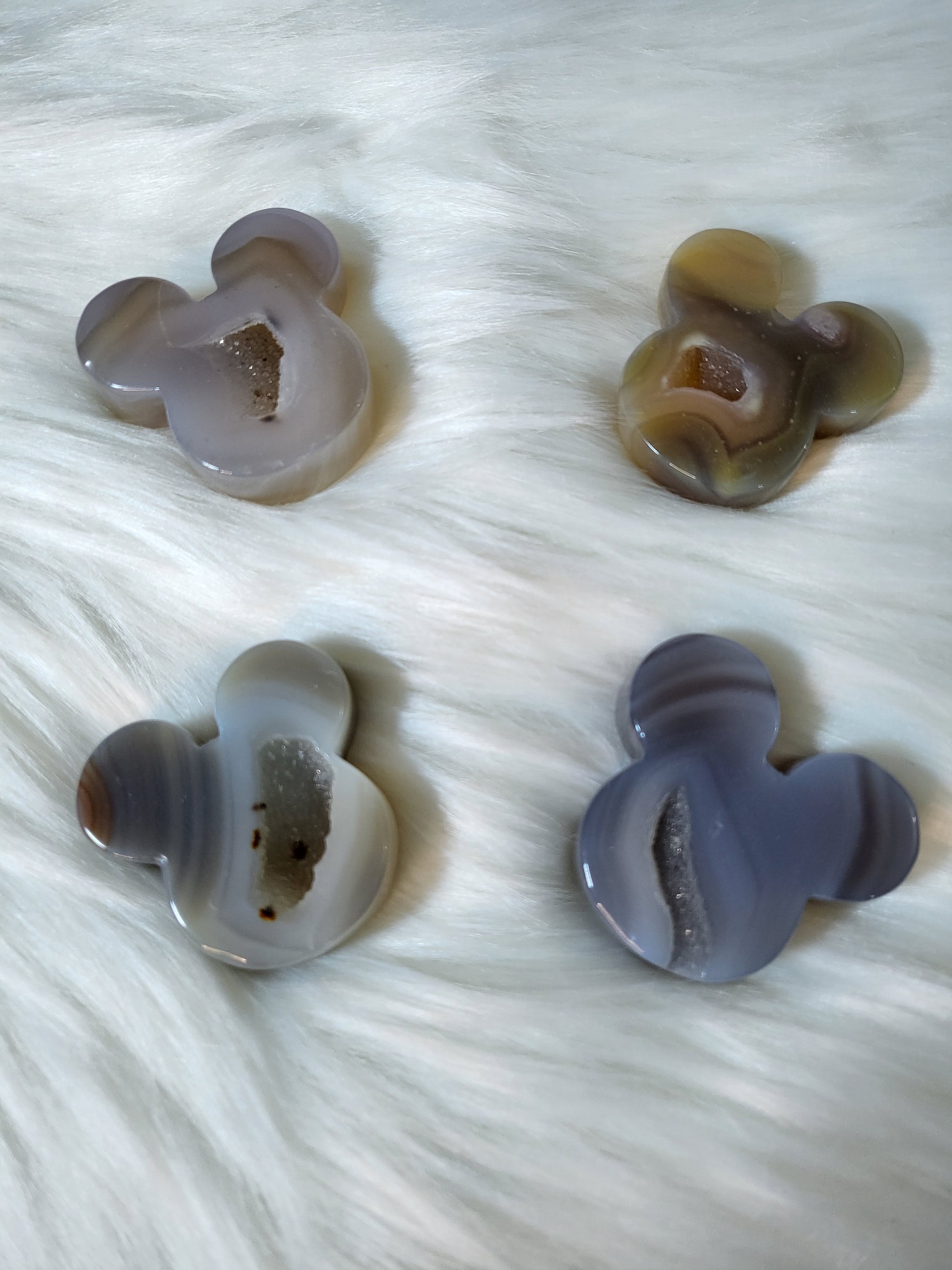 These are so adorable and sparkly!!! Who doesn't love that little mouse! Each one has druzy with nice agate banding.