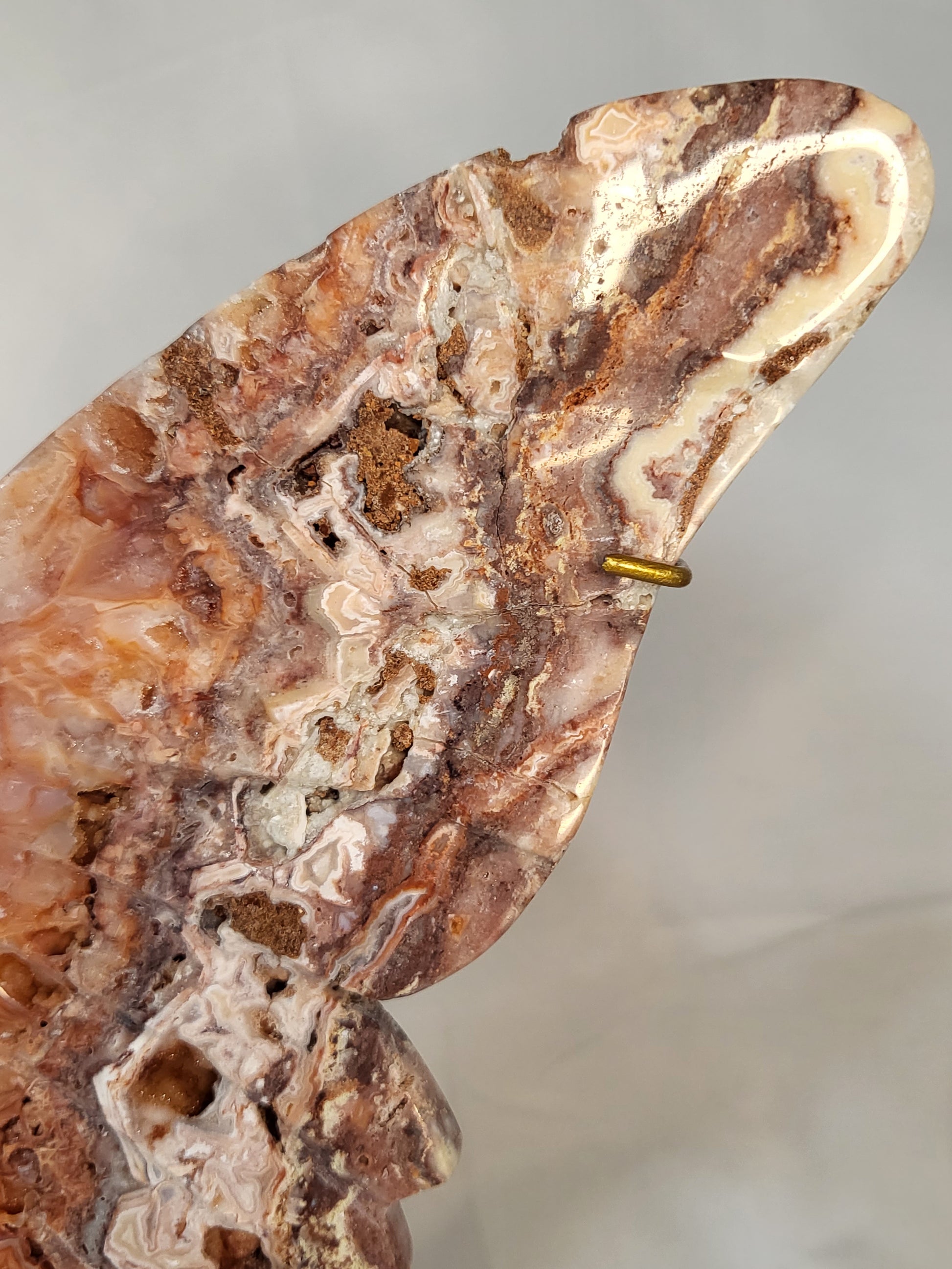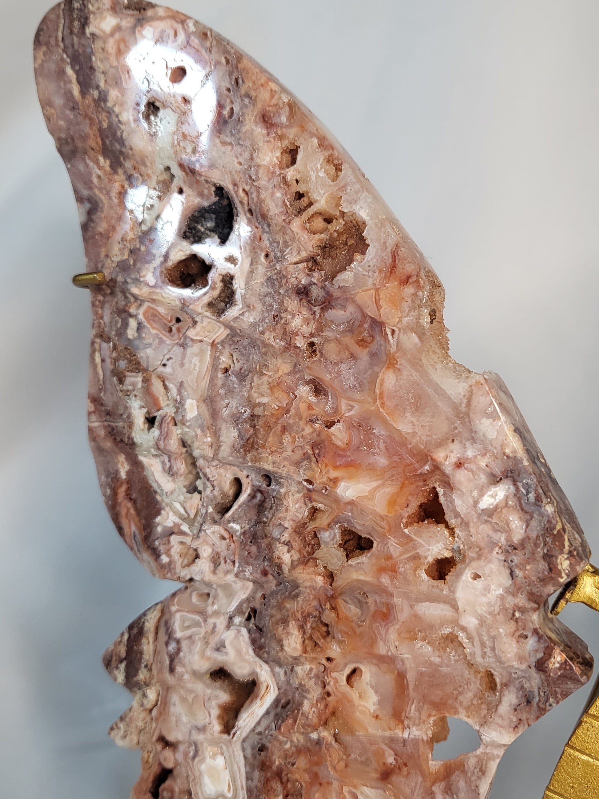 I commissioned these incredibly beautiful pink lace butterfly wings to be made in Indonesia. They are more beautiful than I could have imagined! There are so many areas with sparkling druzy shining through. They also include the wing stand that was custom made to fit these wings.