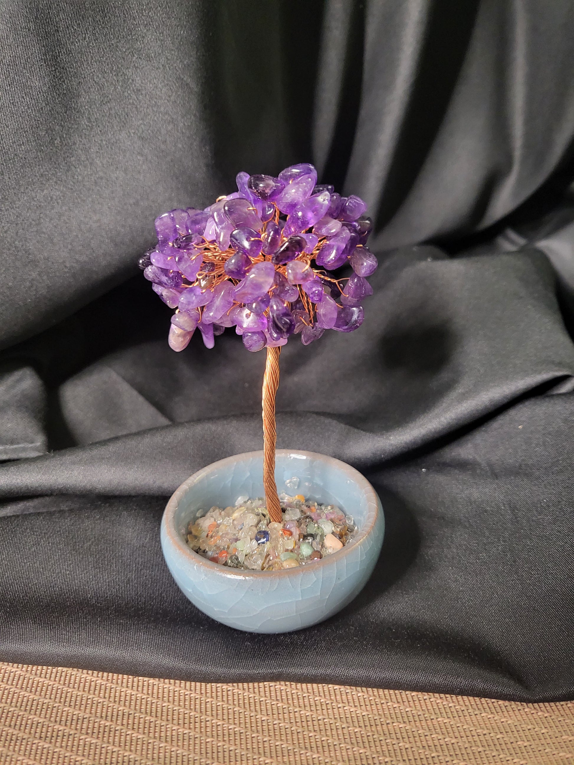 Money Tree C - Amethyst money tree in Light Blue bowl