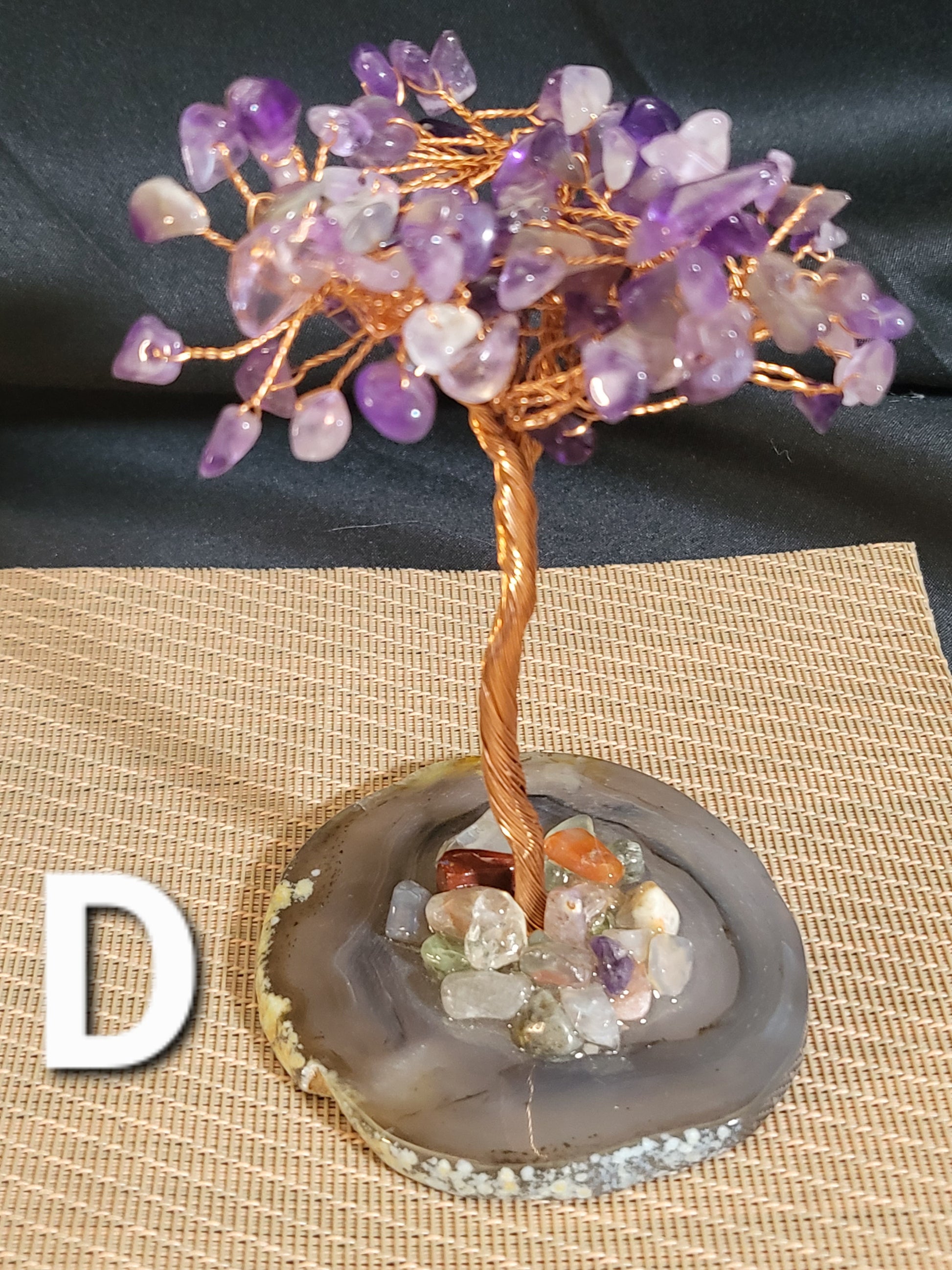 Money Tree D - Amethyst money tree on Agate slice approximately 5 inches tall