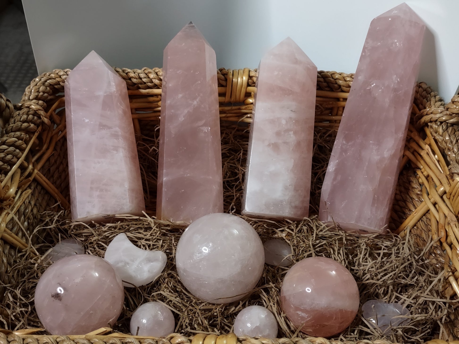 You can find Rose Quartz in many varieties of pinks, blacks and blues. You can also find other color quartz within rose quartz, like golden healer. Rose Quartz is said to block negativity, so it is very common to see people where it in jewelry or keep palm stones or small spheres or hearts in their bags or pockets. Many use it as decoration in their homes or offices because of its emotional healing ability and diminishing any negative vibrations in the area and of course it's beautiful pink color.