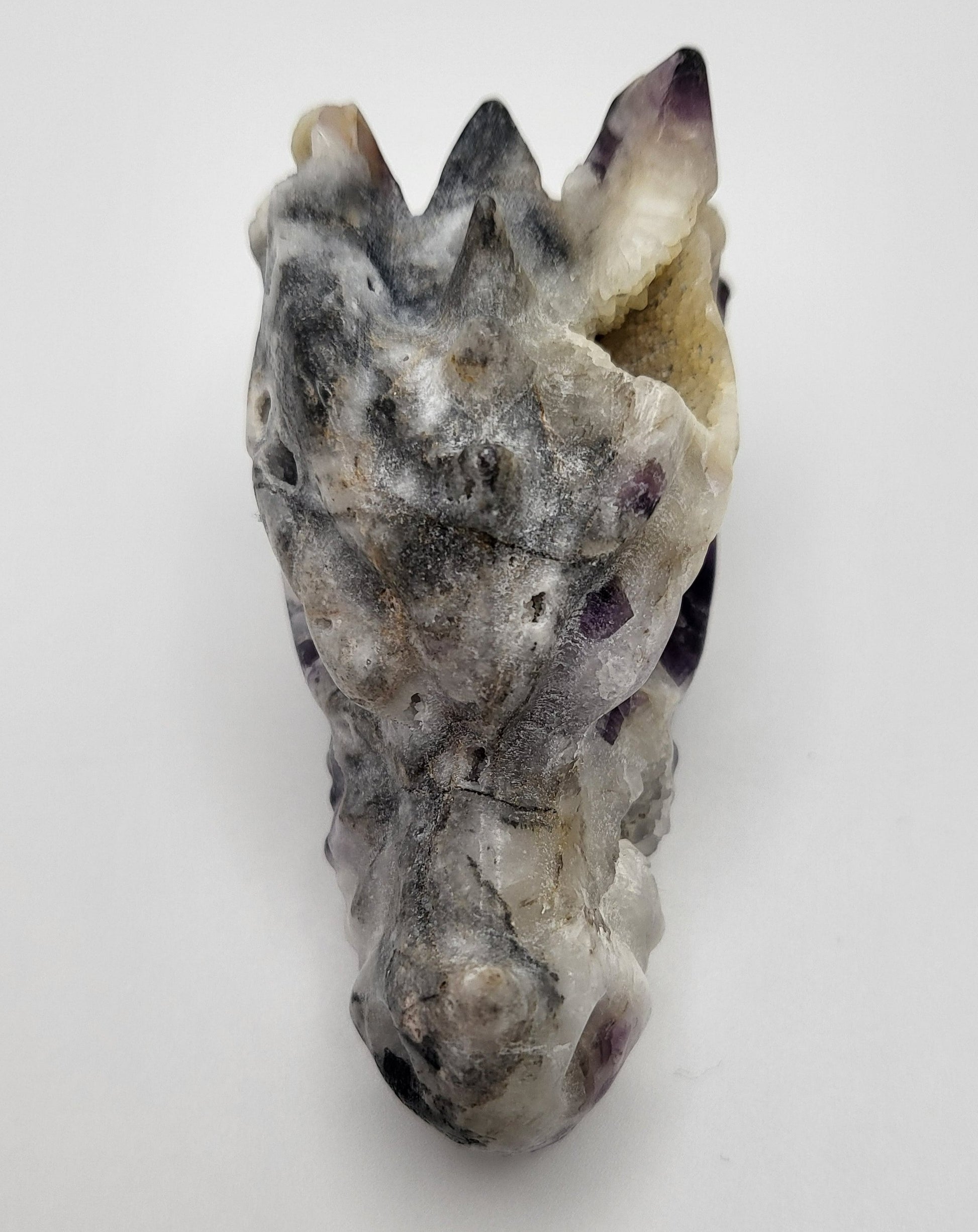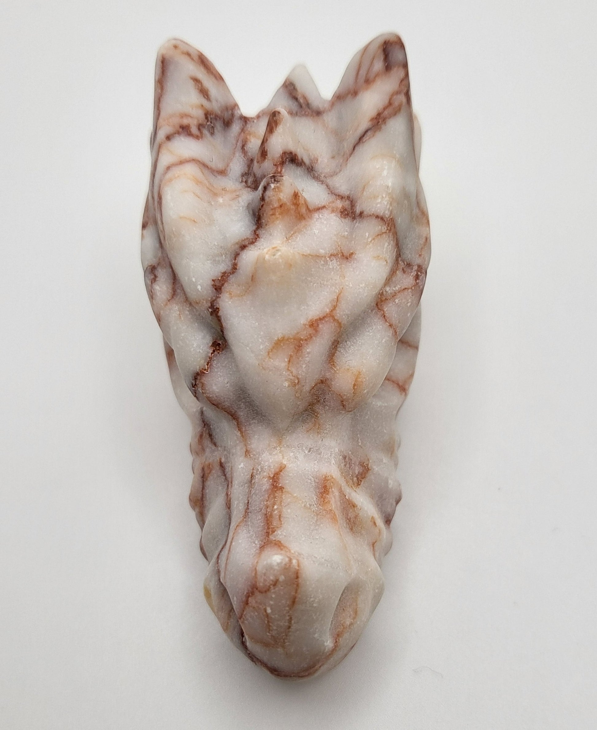 Dragon Head A -Sphalerite- 0.120kg - 2.75in.L x 1.37in.W x 1.69in.H. this little guy has one scale on top back of head that is shorter than other side. Not broken just the nature of sphalerite.